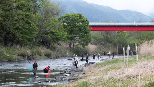 今年も4月25日(土)、埼玉県秩父市の荒川で日本一早い鮎の解禁が行われ、今シーズンの鮎釣りがスタートしました。 昨年に続き鮎クラブ「チームむさし野」のメンバーも前日24日(金)の夕方から三々五々集まりテントの下で前夜祭が始まりました。河原ではいくつものテントが張られそれぞれの鮎師たちが前夜祭を楽しんでいました。 解禁日は午前3時から囮の販売が開始され、暗い中での場所取りが始まりました。解禁は朝の6時に花火が打ち上げられ一斉にスタートしました。我々のチームでは切り込み隊長の折原パパとWISTのジュニアスタッフの悠司君が快調なスタートでした。午前中は曇り空で肌寒い感でしたが9時ぐらいからは晴れ上がり気温も上がってきて順調に釣果が上がってきました。 日本一早い解禁もさることながら、5月17日(日)には「第12回アユ釣り選手権 in秩父CUP」が行われます。弊社WISTも協賛メンバーとしてサポートさせていただいています。